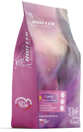 Szukasz musli, które pokocha Twój koń? BIOFEED Candy Musli Full of Fruit to więcej niż pasza. To codzienna przyjemność, naturalna troska i gwarancja zdrowia. Smak, zapach i energia zamknięte w każdej porcji!