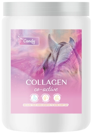 BIOFEED Horse and Pony Candy Collagen Co Active to mieszanka paszowa uzupełniająca przeznaczona dla koni i kuców wszystkich ras które potrzebują wsparcia aparatu ruchu. Preparat został opracowany jako kompleksowe wsparcie chrząstki stawów oraz regeneracji tkanek. Formuła łączy wysokie stężenie glukozaminy siarczanu chondroityny hydrolizowanego kolagenu rybiego oraz wapiennych alg morskich Lithothamnium calcareum co pozwala skutecznie poprawiać elastyczność mobilność i komfort ruchowy konia.
