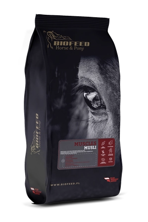 BIOFEED Muscles Musli to starannie skomponowana strukturalna mieszanka paszowa przeznaczona dla koni w intensywnej pracy. Wysoka jakość białka, obecność naturalnych wspomagaczy mięśni oraz bogaty profil witaminowo-mineralny czynią z niej idealny wybór dla koni sportowych potrzebujących silnego wsparcia masy mięśniowej bez ryzyka otłuszczenia.