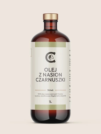 Wysokiej jakości olej z czarnuszki marki CAVELLA to naturalny suplement diety dla koni, pozyskiwany metodą tłoczenia na zimno z wyselekcjonowanych nasion. Jakość spożywcza, pełna kontrola procesu i wyjątkowo wysoka zawartość tymochinonu sprawiają, że jest to produkt idealny dla koni wymagających wsparcia odporności, układu oddechowego, trawiennego i skóry.