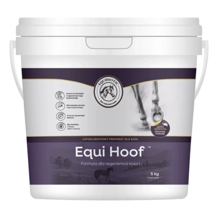 - Equi Hoof™ to profesjonalny suplement wspierający regenerację i zdrowie kopyt oraz poprawę kondycji sierści. Stworzony na bazie ziół, biotyny i substancji aktywnych, preparat skutecznie wzmacnia strukturę rogu kopytowego, przyspiesza jego wzrost.
